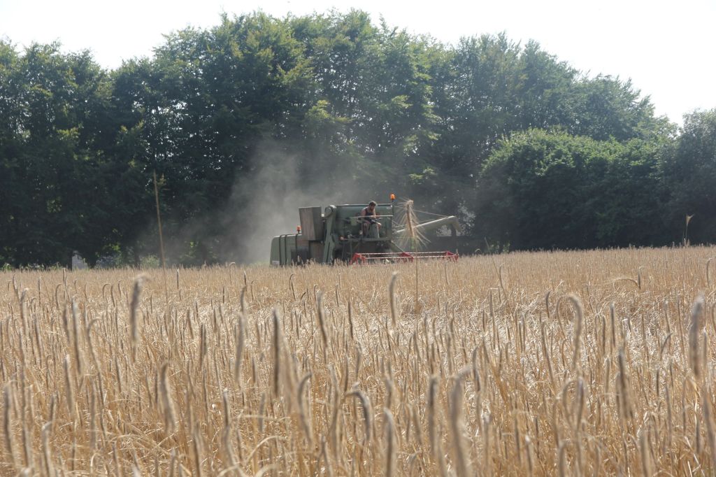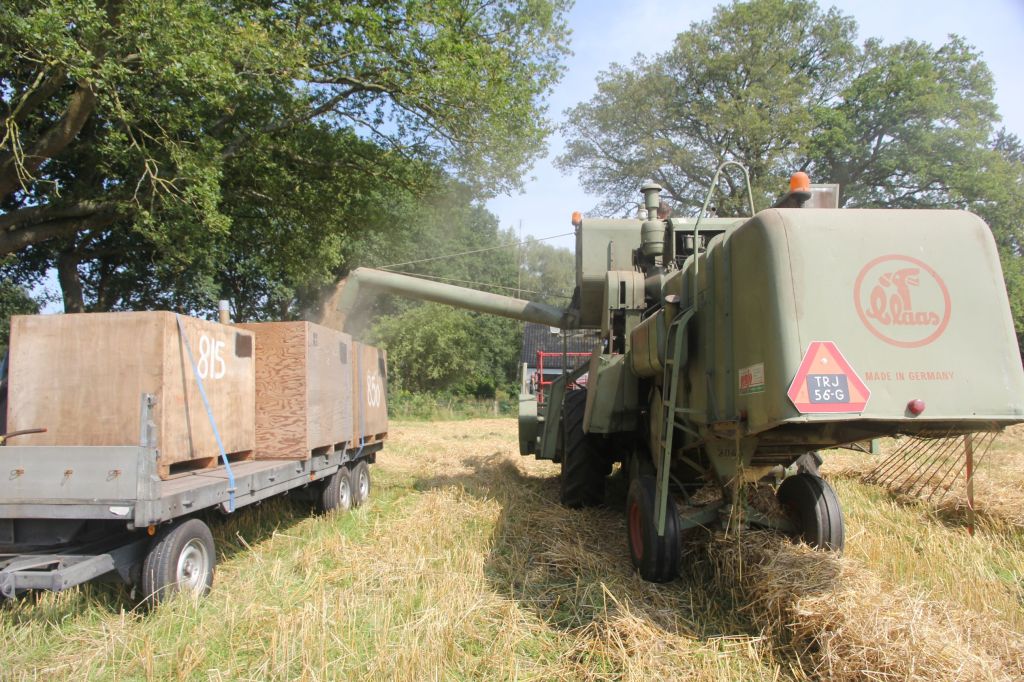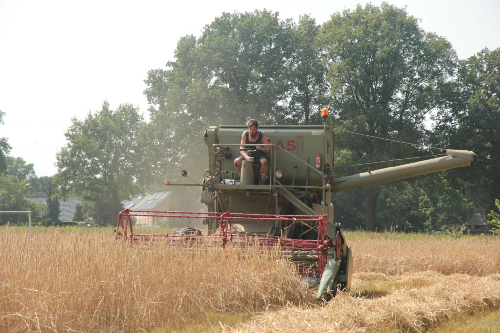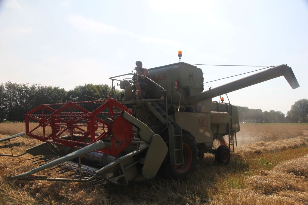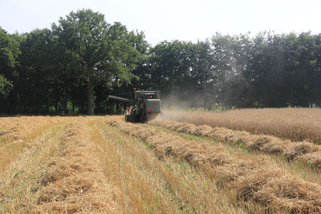 Moderne manier van het oogsten van rogge, hier wordt de korrel geoogst. Het gekneusde stro wordt gebruikt voor in de dierverblijven.